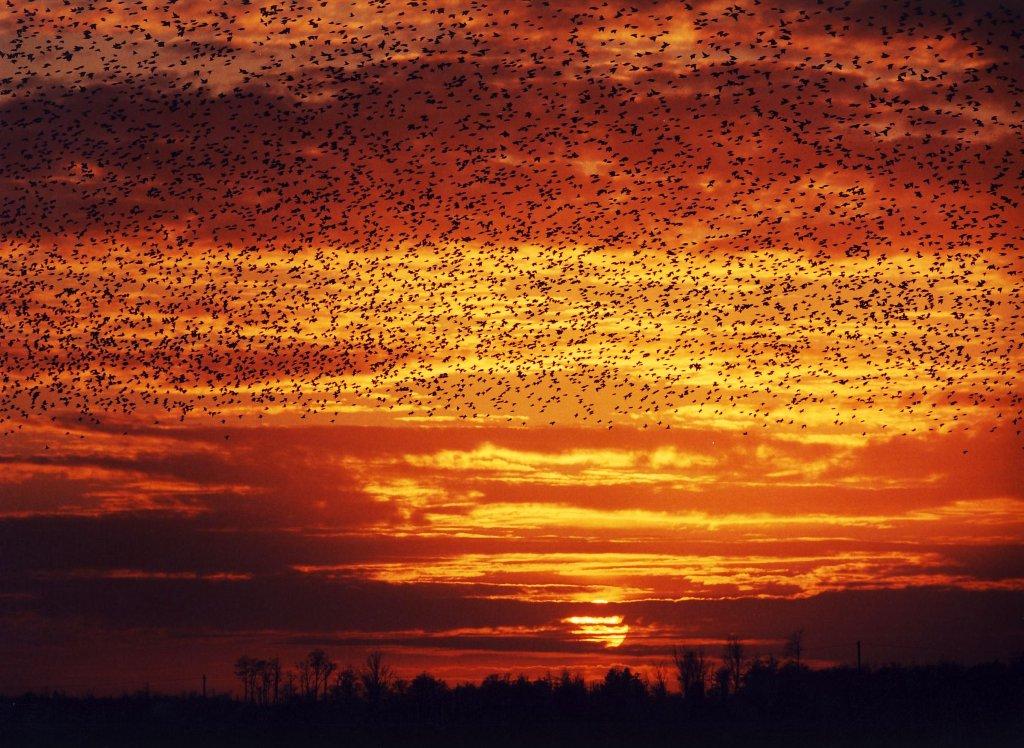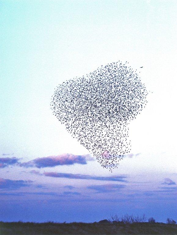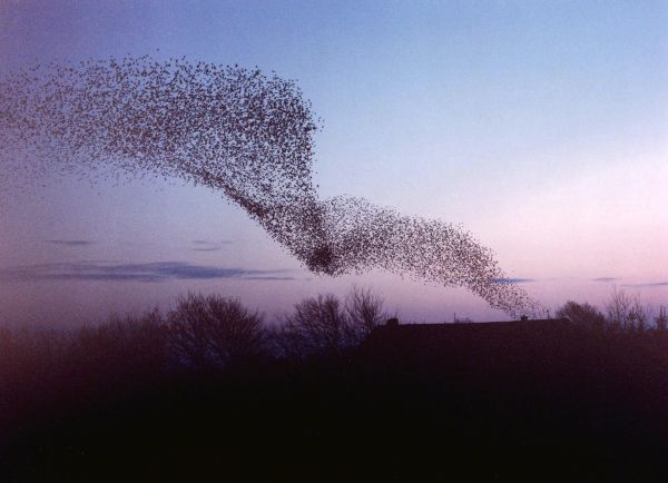Stærenes fantastiske formationer i skumringen